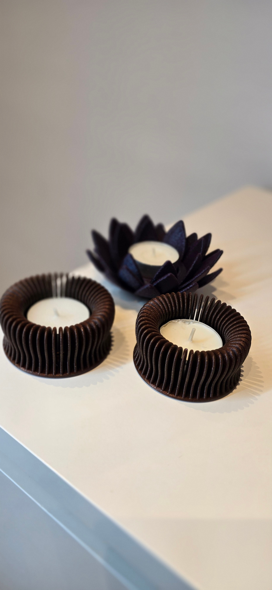 Unsere dekorativen Objekte – vom Teelichthalter bis zu Alltagshelfern – werden individuell nach deinen Wünschen gefertigt. Sie bestimmen Form, Größe und Farbe, optional auch Oberflächenfinish (matt, seidenmatt, glänzend) und Personalisierung (Gravur/Prägung). So entstehen langlebige Lieblingsstücke, die perfekt zu deinem Zuhause passen.